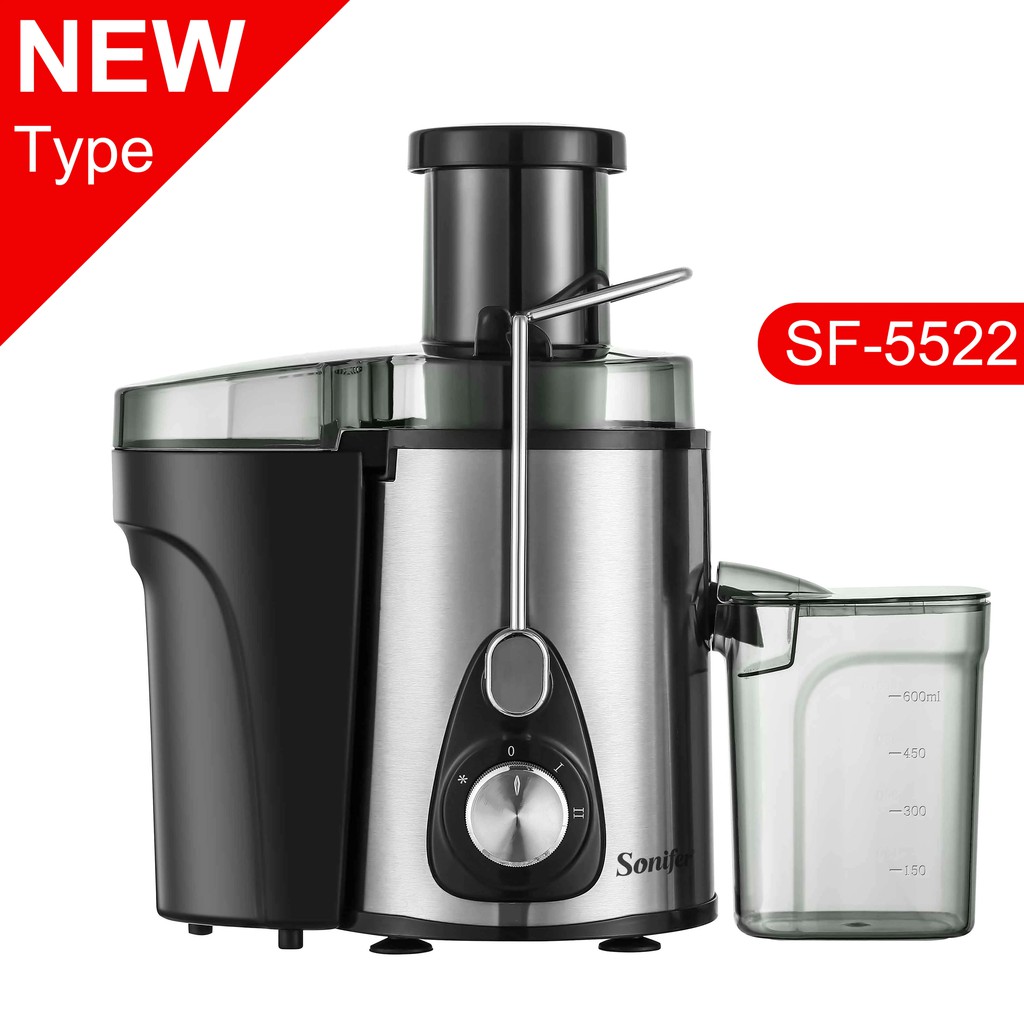 SONIFER JUICE EXTRACTOR Alat Pembuat Jus Tanpa Ampas SF-5522 : -2 Pengaturan kecepatan -Diameter berukuran 7 cm cocok untuk buah dan sayuran yang masih utuh. - Besar wadah 1 liter -Termasuk 600 ml jus jar dengan pemisah buih. -Pisau stainless steel dan filter stainless steel -Sistem keamanan saling terkait, dimana ada fitur pengunci (locking bar safety) yaitu Juice Extractor tidak akan menyala/beroperasi kecuali semua bagian telah dipasang dengan benar. -Permukaan dari bahan stainless steel yang tahan lama - Komponen yang mudah di lepas sehingga mudah dibersihkan. - Permukaan bawah anti licin