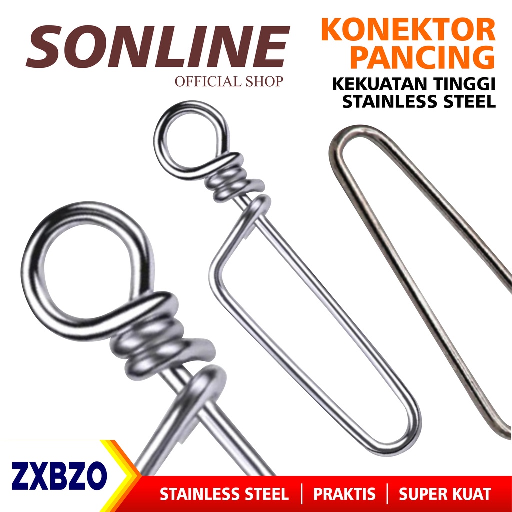 Detail SONLINE 10 Pcs Connector Kili-kili Pancing Rolling Swivel Bahan Stainless Steel Fishing Gear ZXBZO