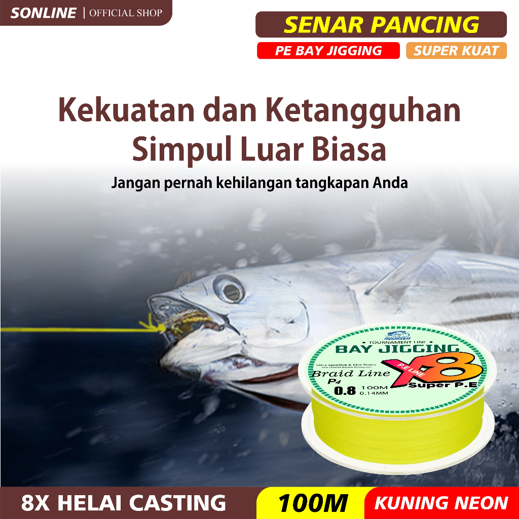 Detail SONLINE - Senar Pancing PE Warna Kuning 100M PE Fishing Line Strength 5.5kg-18kg Sangat kuat Senar Pancing PE X8 Bay Jigging
