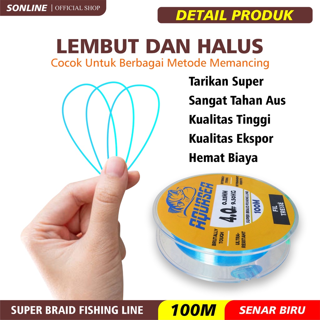 SONLINE Tali Pancing Aquasea 100m Warna Biru Senar Pancing Nilon Gorilla Tough Super Braid Fishing Line Kuat & Tahan Bahan Nilon Impor
