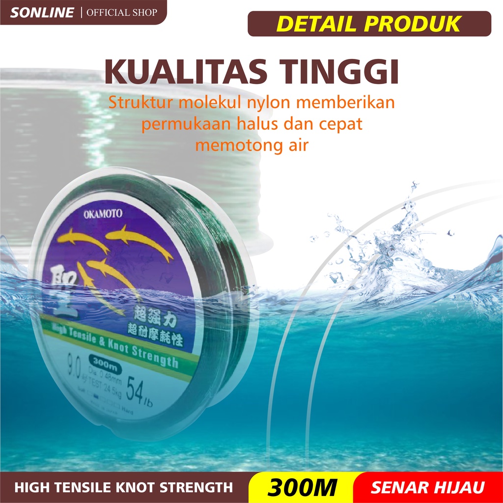 Detail SONLINE Tali Pancing Okamoto Senar Pancing Jepang 300m Kekuatan tarik & tensil