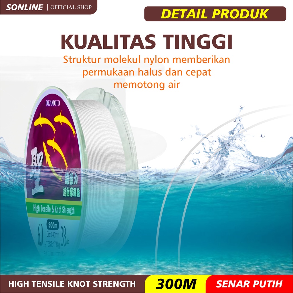 Detail SONLINE Tali Pancing Okamoto Warna Putih Senar Pancing Jepang 300m Kekuatan tarik & tensil