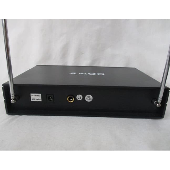 Mic / Mikropon / Microphone Double Wireless Sony sn-87. Untuk yang suka karaokean Mic ini sangat cocok dipakai. Suaranya jernih dengan isi 2 didalamnya sehingga bisa nyanyi berdua (duet). Dengan sistem wireless yang bisa dibawa kemana-kemana. Cocok digunakan untuk acara dalam maupun luar ruangan.Freq Carrier : VHF 180-270 MhZ, Stabilitas Freq : 80dB, Suara BandHz-18KhZ, Suara Output :0 - 400m.