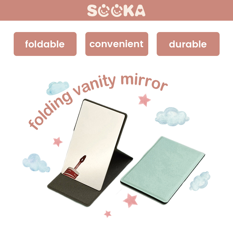 SOOKA Cermin Lipat Portabel, Bahan Stainless Steel , Cermin Rias Anti Jatuh, Cermin PU bahan cover kulit depan, Cermin Kecil HL-AGA802