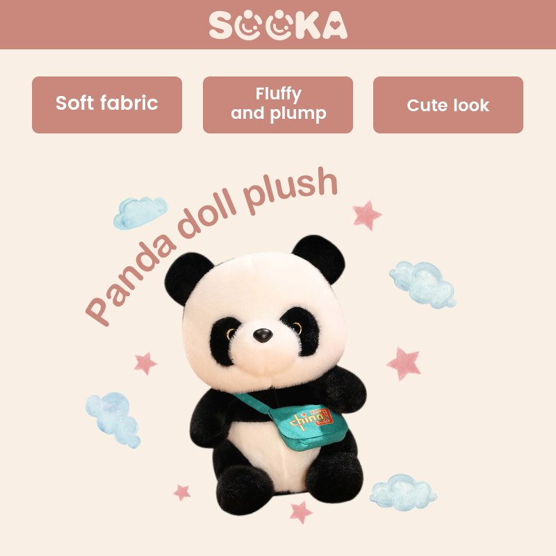 [Product Info] "1. Nama Produk: Boneka Sooka Panda 2. Ukuran produk: 22cm 3. Spesifikasi produk: 1 pcs 4. Bahan produk: kain: mewah; isi: kapas PP 5. Berat produk: 160g"""