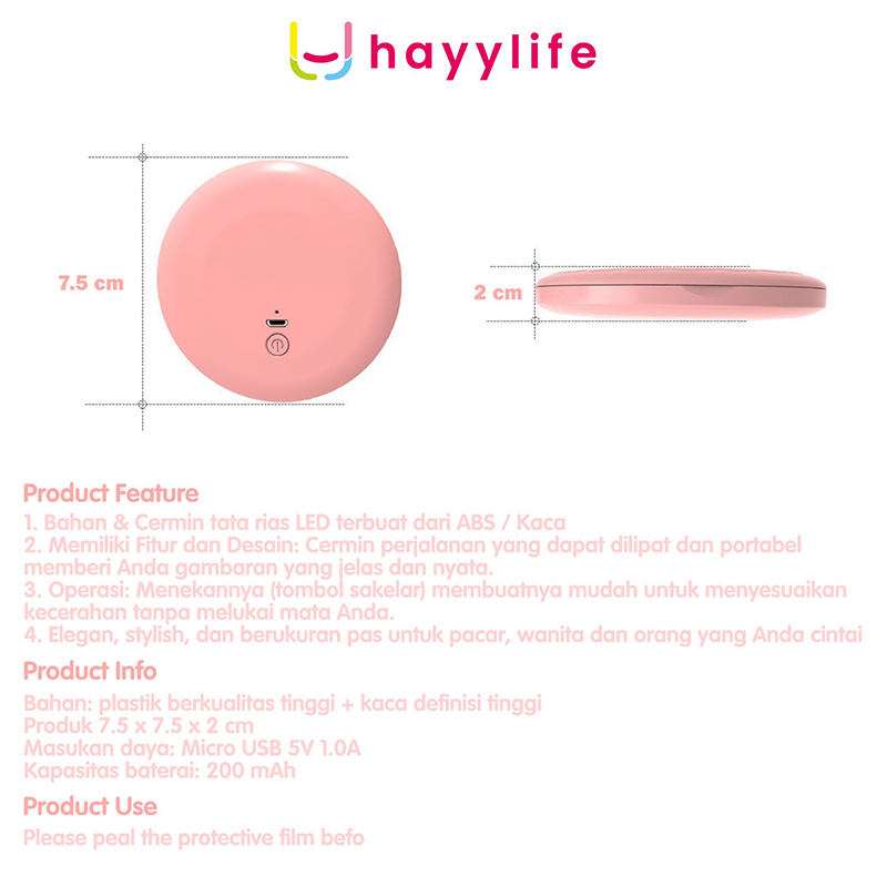 Cermin rias portabel, cermin datar definisi tinggi dua sisi, dengan lampu rias cahaya lembut LED, persepsi cahaya alami. 75g ringan dan portabel, mudah digunakan. Port pengisian USB, sakelar satu tombol. Kustomisasi dukungan. Dilengkapi dengan lampu rias, sehingga kamu dapat merias wajah kapan saja. Mata lampu terang membuat pencahayaan semakin cerah, cermin datar kualitas tinggi, pengisian daya dengan USB Saklar satu tombol, dan menyalakan lampu. Pengisian daya dengan USB, cukup colok dan gunakan