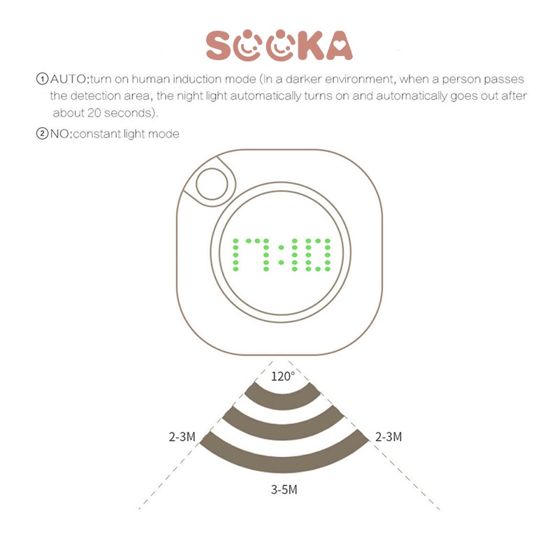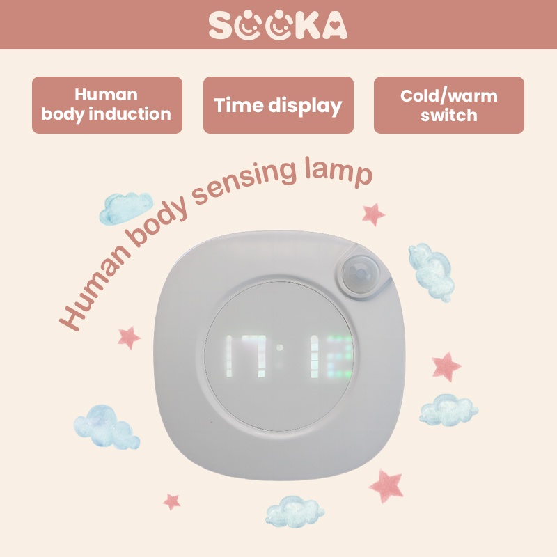 Perlengkapan Rumah > Dekorasi > Jam Dinding > SOOKA Smart Night Light Portable With Clock-Sensor tubuh manusia yang cerdas dengan lampu led malam kecil yang dapat diredupkan pada malam hari SK-ACA1102