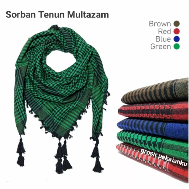 Sorban Multazam, Sorban tenun songket, Sorban tenun tebal, Sorban Murah Berkualitas, Sorban Palestina, Sorban Haji, Sorban Arab rumbai premium, Sorban hijau, Sorban Panjang, Sorban hitam, Sorban Habib, oleh2 haji dan umroh