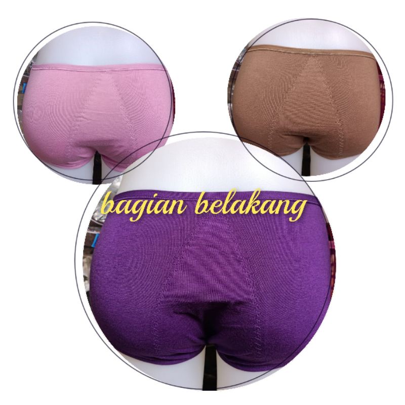 Tetap kenakan pembalut ketika menstruasi, pemakaian celana dalam ini untuk menahan tetesan darah yang mungkin tembus dari pembalut supaya tidak mengotori rok / celana.