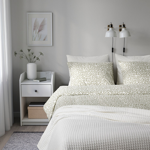 Detail SORGMANTEL Sarung duvet 240x220 cm dan 2 sarung bantal 50x80 cm, putih/hijau