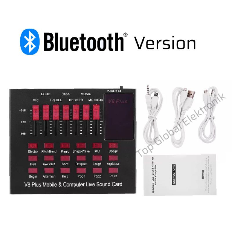 Audio USB External Soundcard ini berguna untuk membuat efek-efek suara elektronik artifisial dan sound effect secara live dari microphone Anda. Biasa digunakan untuk broadcast dan streaming secara live diberbagai platform seperti youtube, twitch dan lainnya. Sound Card V8 Plus ini menggunakan koneksi bluetooth sehingga dapat terhubung ke komputer, laptop maupun smartphone tanpa perlu kabel lagi.
