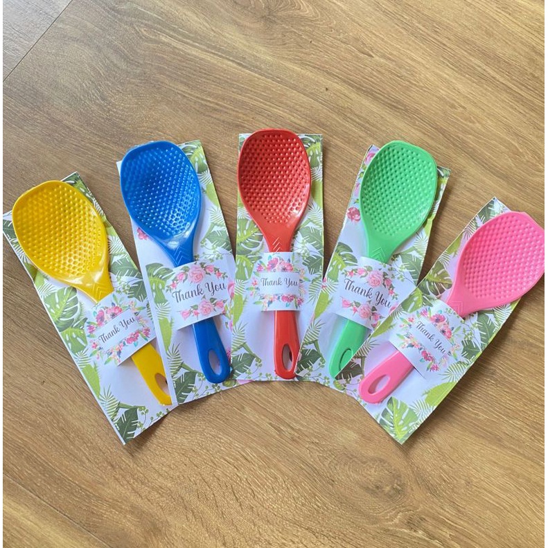 Detail Produk - Centong terbuat dari bahan plastik kuat dan tebal - Warna centong dan desain kertas alasnya RANDOM sesuai stok - Harga di atas adalah harga satuan - Centong sudah di kemas lengkap satu per satu (sesuai gambar produk) - Barang READY STOK siap kirim - TIDAK BISA REQUEST nama / tanggal - Harga murah meriah, cocok banget utk di pakai souvenir berbagai acara