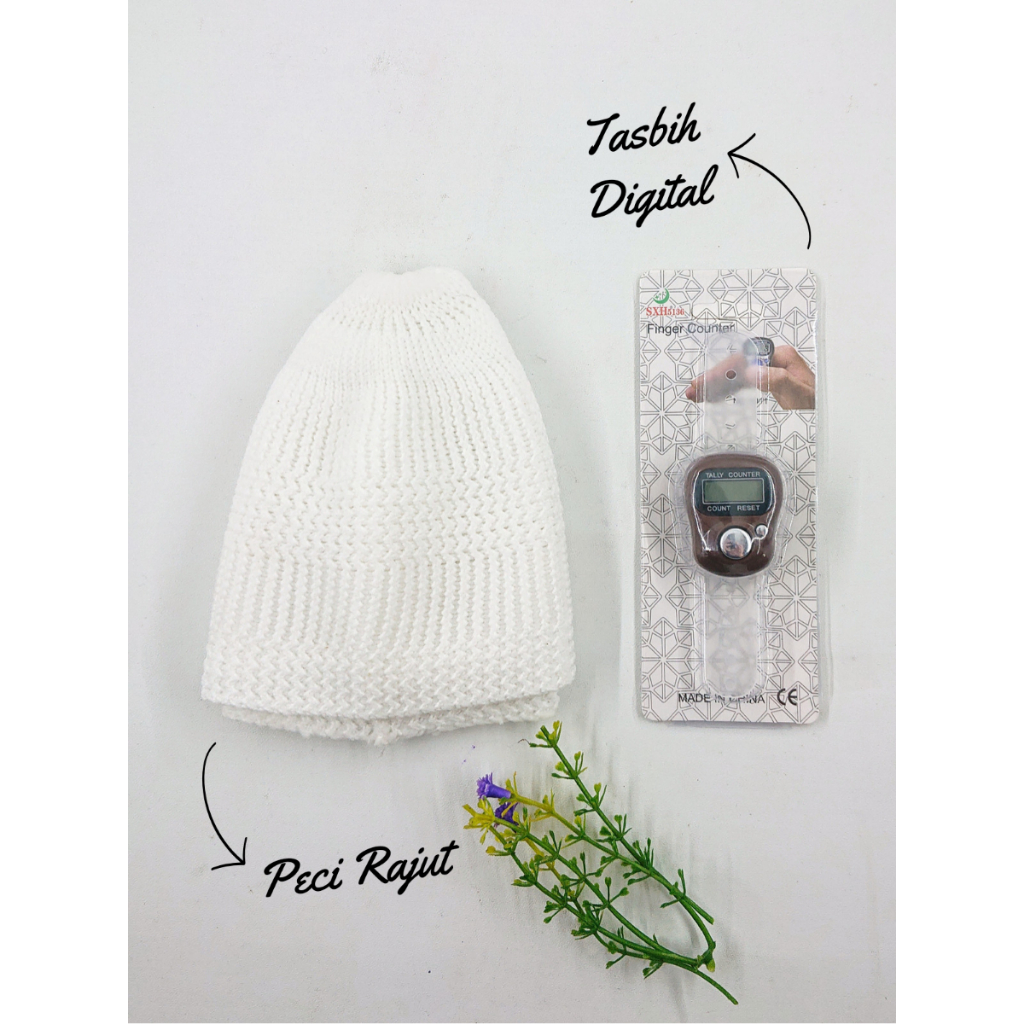 Isi Souvenir : * Tasbih Digital * Peci Rajut Putih