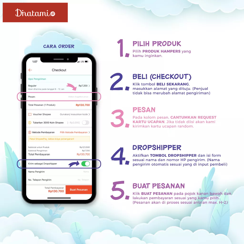 Untuk request teks kartu ucapan mohon tulis di kolom catatan sebelum check out, tidak menerima request teks di kolom chat. (Tidak menuliskan teks ucapan, dikirim random)