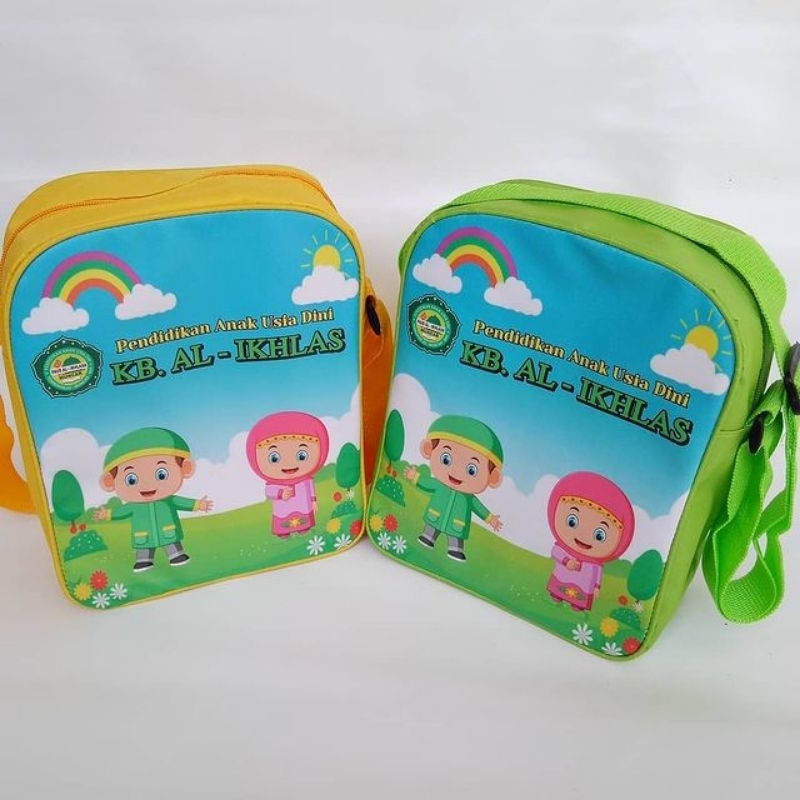 Detail Souvenir Tas slempang portaid/souvenir ultah/hampers/free desain