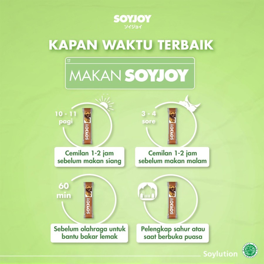 SOYJOY, satu-satunya bar kedelai utuh yang tinggi protein, tinggi serat, dan dicerna perlahan dalam tubuh sehingga bantu kenyang lebih lama, jadi #Soylution untuk jaga berat badan dan bantu hidup Anda, keluarga, dan orang-orang yang disayang menjadi lebih sehat