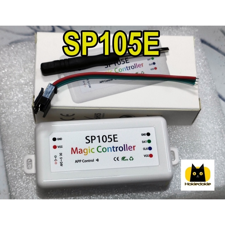 Nama :SP105E RGB smart led Controller mode koneksi: Bluetooth V4 Jarak BLE: 10m Voltase: DC 5-24V Voltase Output: Sama dengan input Pixel : 2048 Download Aplikasih dengan Scan barcode di Kertas Petunjuk, dan lokasi/GPS HP harus hidup agar bisa terhubung ke controller cocok untuk semua jenis led programable, misa ws2811, ws2812b, sm16703, GS1903
