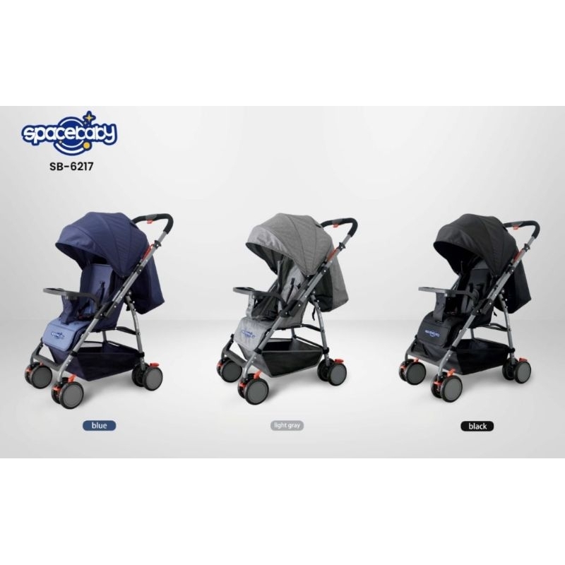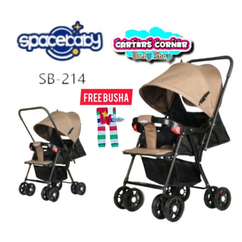SPACEBABY SB 214 : - Pegangan dapat diatur bolak balik sehingga bunda bisa dorong dari arah depan atau belakang - Kemiringan sandaran dapat diatur (posisi tidur, rebahan, duduk) - Busa yang empuk membuat bayi menjadi nyaman - Sabuk pengaman - Keranjang di bagian bawah untuk menaruh keperluan bayi - Sangat mudah dilipat - Bobot maksimal 20 Kg