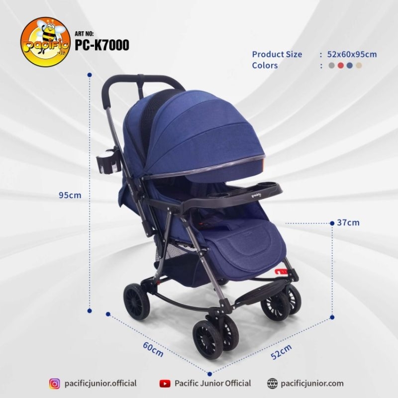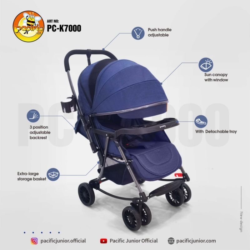 Spacebaby K7000 XL Kereta bayi untuk new born sampai 3 tahun dengan 3 pengaturan posisi duduk rebah tidur. Dilengkapi sabuk pengaman 5-titik