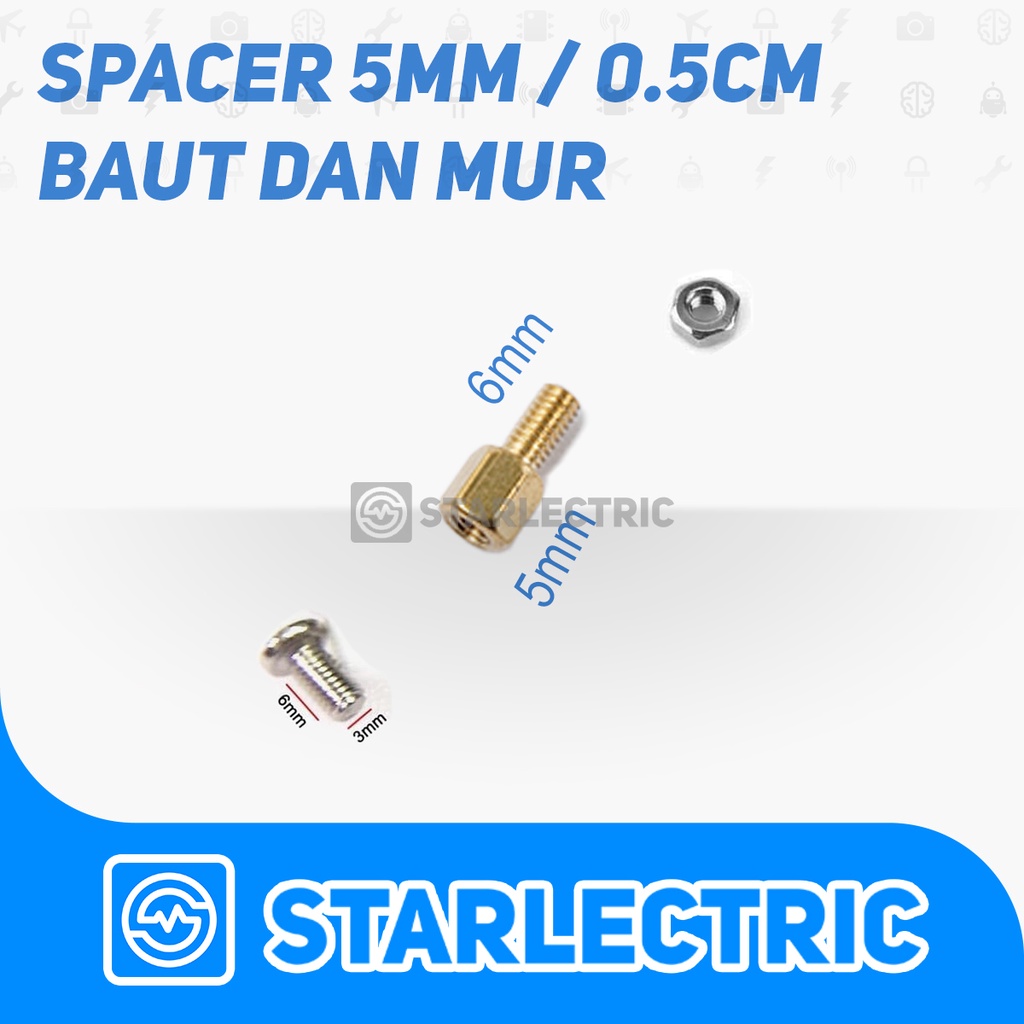 Detail Spacer Besi Kuningan M3 Hex Screw 5+6 PCB 5mm Lengkap Mur Baut