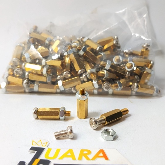 Spacer / Kaki PCB 1 cm Kuningan | Spacer PCB Ukuran 1 cm Logam Kuningan - Spacer Kaki PCB dengan Warna Gold (Emas) - Spacer untuk kaki papan PCB - Lengkap (sudah termasuk mur dan bautnya) - Harga Untuk 1 Pcs Spacer (termasuk mur dan bautnya masing-masing 1 Pcs/Buah) - Beli Grosir Lebih Murah - Tersedia Juga Variasi Spacer Ukuran : - 1.5 cm - 2 cm - 2.5 cm