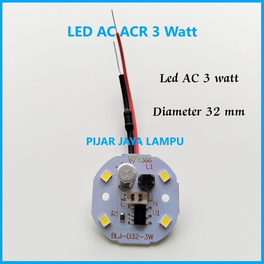 DOB Led AC jenis (ACR) ini digunakan untuk mengganti Lampu LED rusak, Sangat praktis digunakan untuk servis lampu LED, bisa di hubungkan/dinyalakan langsung menggunakan arus listrik PLN 220Volt. Nyala di jamin sangat terang, kualitas setara chip led merk terkenal (garansian), dilengkapi dengan kabel AC. Praktis tinggal pasang di lampu LED. Tidak memerlukan Driver tambahan. Port Kabel berada di center/tengah LED AC, hal ini memudahkan pengguna dalam aplikasinya diberbagai merk lampu LED.