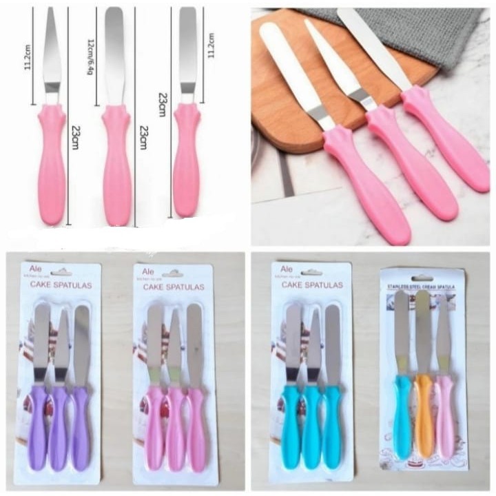 1 set Spatula // 3 pcs dengan 3 macam fungsi dan kegunaan nya bahan terbuat dari stainless & plastik sangat nyaman di gunakan Produk Import