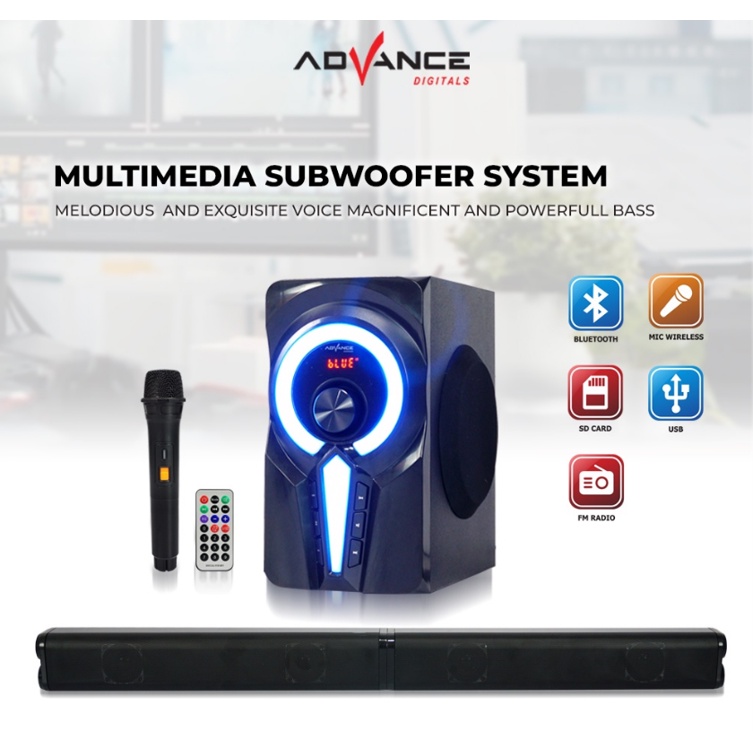 Advance M25BT Speaker Multimedia Bluetooth Karoke Mic Wireless RGB led. Speaker Yang di desain unik dan mewah, dilengkapi dengan fitur-fitur menarik lainnya. Speaker ini bisa di koneksikan ke Laptop, PC ataupun ke perangkat lain yang sudah mendukung Port 3.5MM Serta Memiliki Koneksifitas Berupa Bluetooth yang bs kamu hubungkan ke handphone yang kamu miliki. sehingga bisa dijadikan untuk berkaroke dan pastinya sangat elegant.