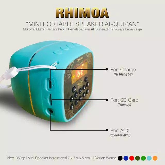 Detail SPEAKER AL-QUR'AN RHIMOA SPEKER MUROTTAL QURAN 16GB BLUETOOTH V600
