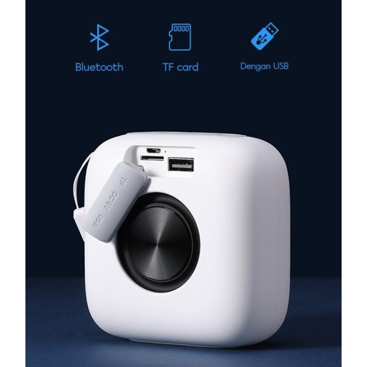 - Bluetooth version : 5.0 - working distance : <10M - output power : 5W - speaker specification : 52mm - frequency range : 40Hz~18KHz - signal to noise ratio : >75dB - battery capacity : 1800mAh 3.7V - play time : 8 hours - charging time : 3 hours - power input : 5V = 1A - product size : 94 x 94 x 48mm Fitur : 1. mini portable, ringan, mudah di bawa. 2. speaker dengan daya besar 5W dynamic bass yang lebih powerful. 3. upgrade bluetooth chip 5.0 koneksi dan transmisi yang lebih cepat. 4. fitur TWS dapat tersabung dengan 2 speaker secara bersamaan, stereo yang powerful. 5. IPX5 outdoor waterproof, tidak perlu takut terkena hujan. 6. mengisi daya 3 jam, mendengar lagu 10 jam. 7. 3 jenis cara pemutaran lebih banyak pilihan memutar dengan TF card, dengan USB, bluetooth.