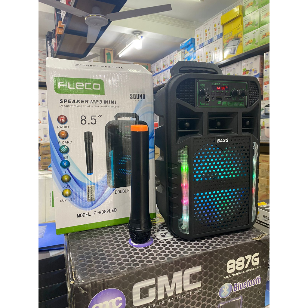 Detail SPEAKER BLUETOOTH FLECO F-8089LED 8.5INCH FREE MIC Wireless + REMOTE - SPEAKER KARAOKE FULL BASS BERGARANSI RESMI
