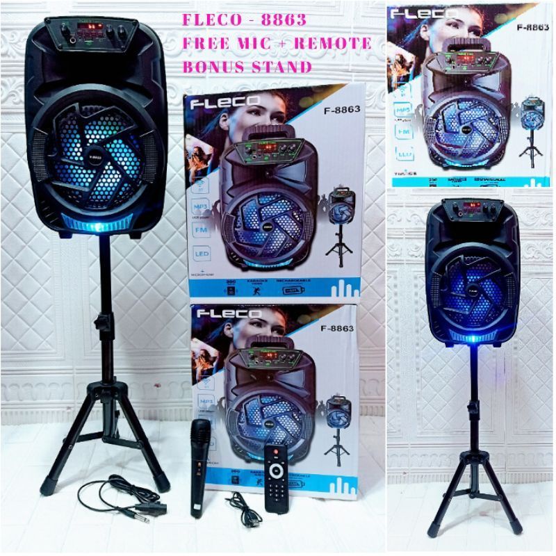 Handphone & Aksesoris > Audio Handphone > Speaker > Speaker Bluetooth Fleco F8807/8806 Bonus stand Speaker Mic Karaoke/Speaker Portable Radio Fm/Salon Aktif Wireless Super Bass