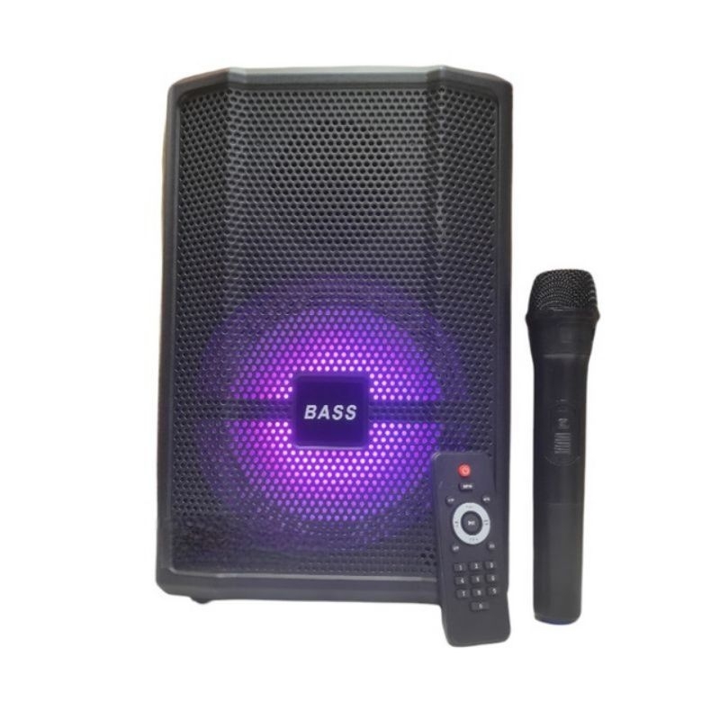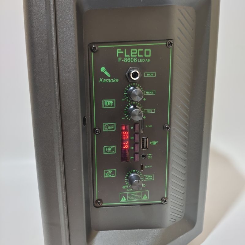 Handphone & Aksesoris > Audio Handphone > Speaker > Speaker Bluetooth FLECO X-BASS F-8606 LED 8,5 Inchi Free Microphone Wireless Karaoke Remote Control Salon Aktif Portable Radio Fm