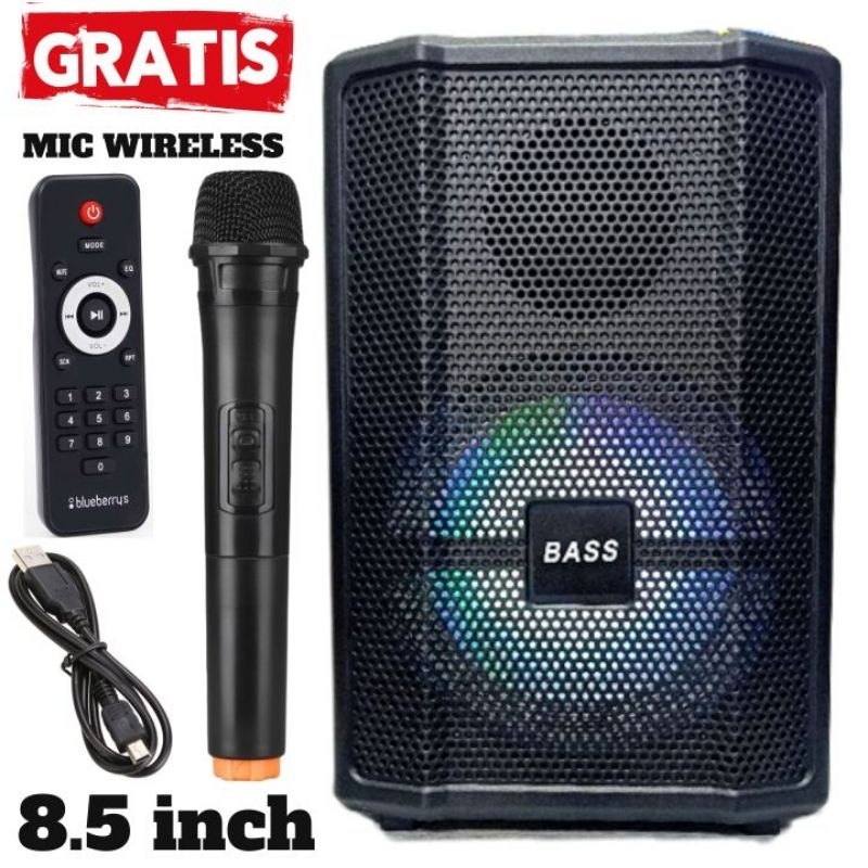 Detail Speaker Bluetooth FLECO X-BASS F-8606 LED 8,5 Inchi Free Microphone Wireless Karaoke Remote Control Salon Aktif Portable Radio Fm