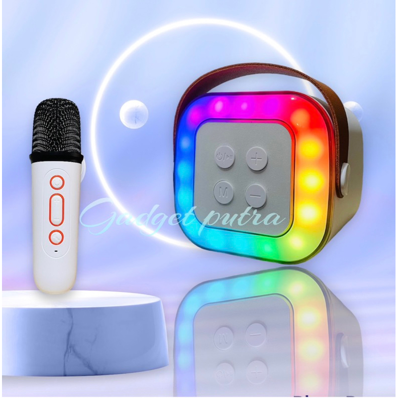 nama Produk:bluetooth speaker wireless karaoke bahan produk:ABS Versi Bluetooth:5.0 ukuran speaker:82mm*88mm*85.5mm SUPOT Mic wireles AUX TF Card USB BLUETOOTH