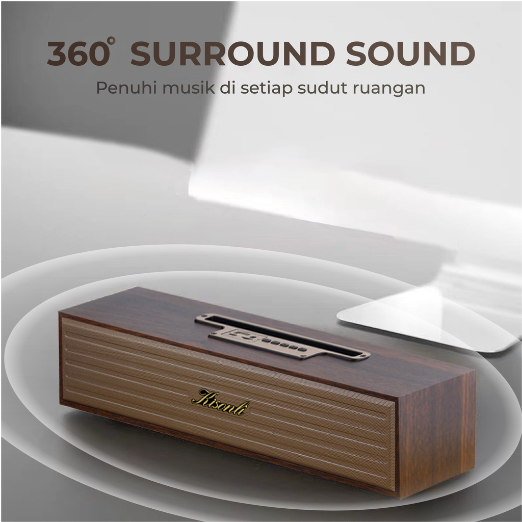 Detail Speaker Bluetooth Kayu Asli Klasik G11A Kisonli Retro Dengan Phone Holder - XOBOX