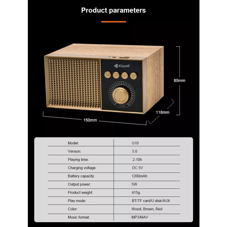 Detail Speaker Bluetooth Kisonli Portable Retro Klasik G10 - ACS