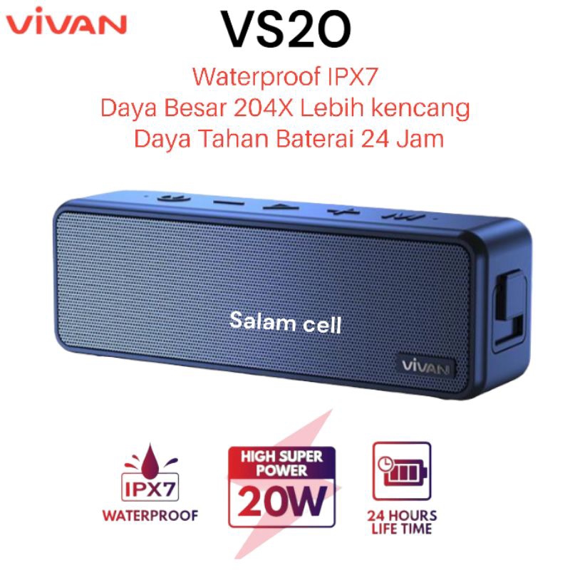 Handphone & Aksesoris > Audio Handphone > Speaker > Speaker Bluetooth Music Box Anti Air VIVAN VS20 Wireless Audio Portable Mega Bass Waterproof IPX7 Hi-Fi