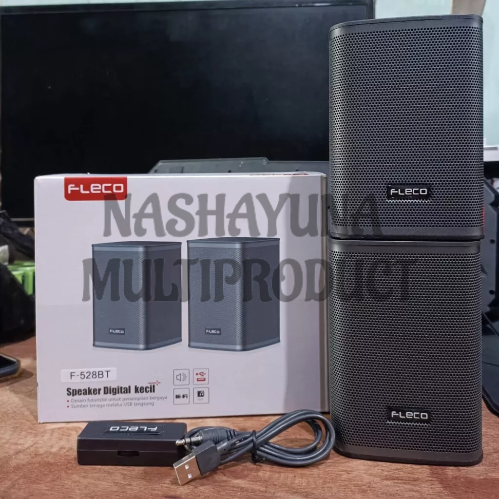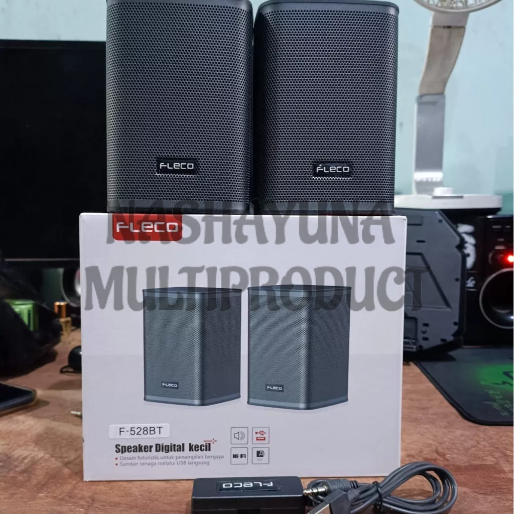 SPEAKER DIGITAL BLUETOOTH FLECO F-528BT SPESIFIKASI: SISTEM SPEAKER-2.0 SPEAKER TENAGA TERUKUR-5W TENAGA MAKSIMUM-6W[MAX] SPEAKER-66MM*2+52MM*2 RASIO SINYAL KE SUARA-58DB RESPON FREKWENSI-20HZ-20KHZ DISTORSI-80HZ-20KHZ<1%