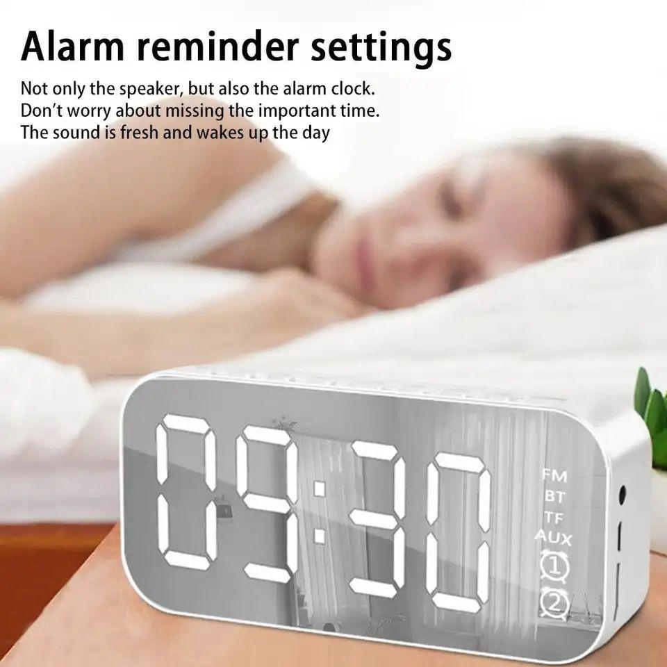 Handphone & Aksesoris > Audio Handphone > Speaker > Speaker jam alarm Bluetooth 5.0 LED Display clock ultra Bass stereo mirror with FM Radio original speaker Bluetooth Jam Alarm clock garansi