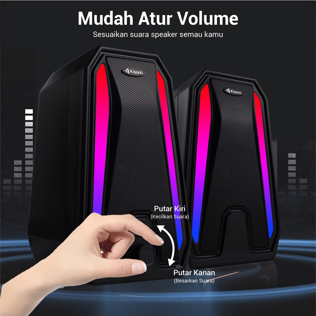 Spesifikasi : ▶ Merk : Kisonli ▶ Speaker Sistem : USB 2.0 / AUX ▶ Bahan : Plastic ▶ Supply Voltage : DC5V ▶ Rate Power : 5W x 2 ▶ Maximum Power : 5.5W ▶ Impedance : 4Ω ▶ Rentang Frekuensi : 150HZ - 20kHZ ▶ Rasio Kebisingan : 70dB ▶ Separation : 35dB ▶ Berat : 915 ▶ Ukuran Paket : 19 x 23 x 12 cm