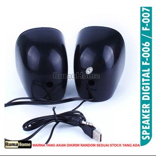model F-006 Tenaga terukur: 1,5wx2 Tenaga max : 3.5W Impedance : 4ohm Ratio sinyal ke suara: 65dB Respon frequensi 20Hz - 20KHz Speaker : 2 inch Size : 75x105x150mm Power supply: DC5V/USB 5V unit : 2pcs speaker