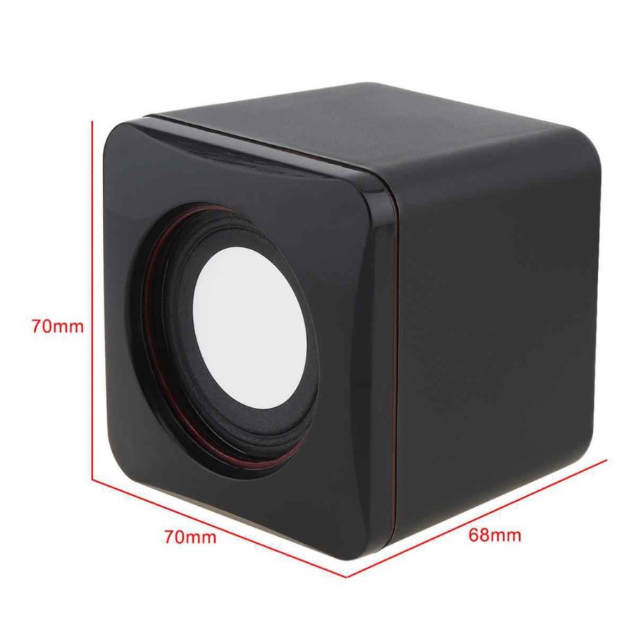 Ukuran speaker (1 speaker) : 7cm x 7 cm x 7cm Power dari usb Colokan jack 3.5mm Pengatur volume ada di bagian belakang Sumber daya dari USB Slot ( langsung Colok ke USB ports di laptop atau Powerbank bisa juga langsung tancap ke Batok Charger )