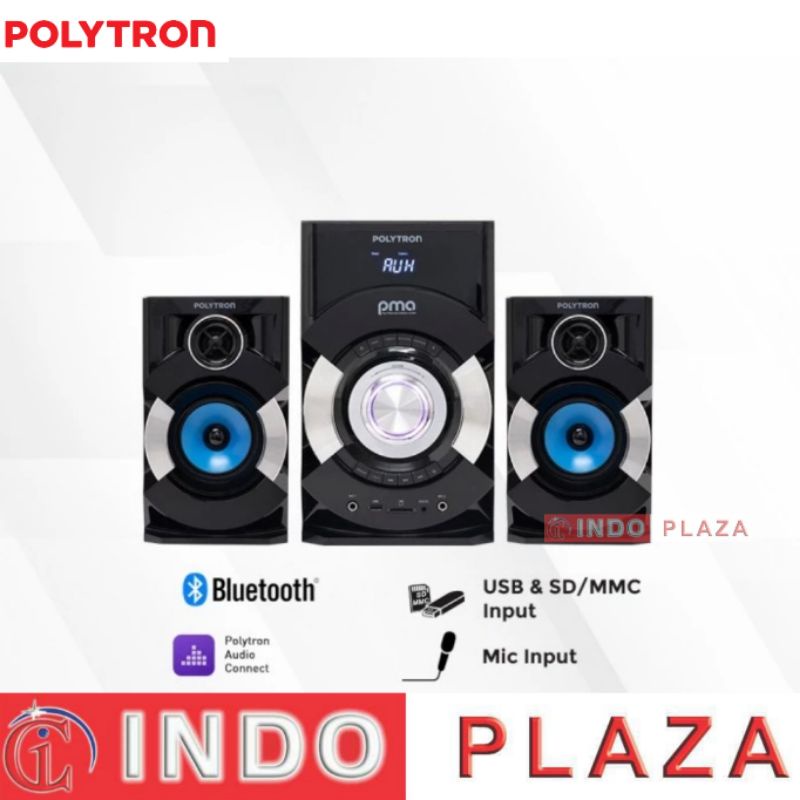 2.1ch Multimedia Speaker Bazzoke (Extra Bass) LED Display Digital Bass & Treble Control Preset Equalizer Ambient Light Bluetooth Connection Supported with Polytron Audio Connect App USB, SD Card/MMC, Aux, Line Input FM Radio 2 Mic Input with Echo Control Remote Control Power Output: 150 WRMS Garansi Resmi 1 tahun