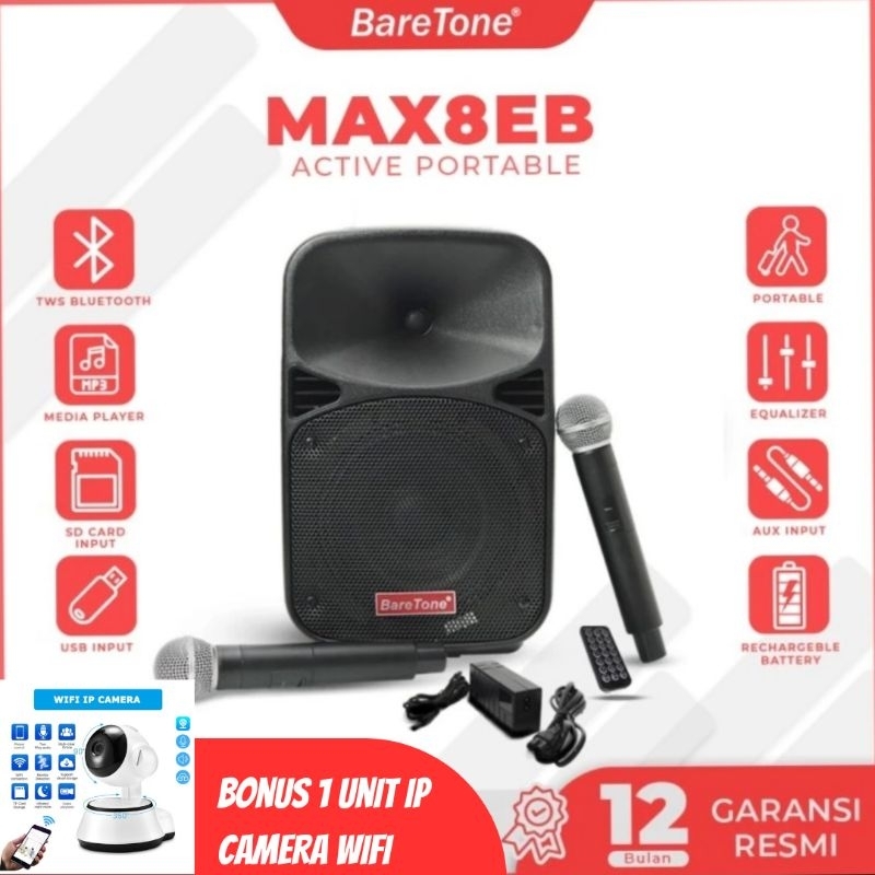 Handphone & Aksesoris > Audio Handphone > Speaker > SPEAKER PORTABLE 8" BARETONE MAX08EB BONUS IP CAMERA WIFI