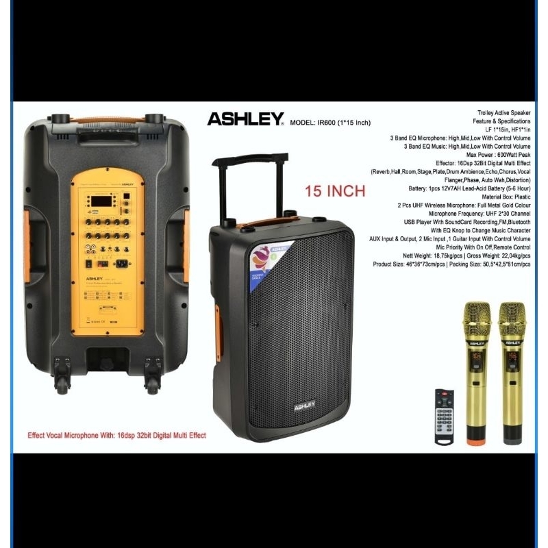 SPEAKER PORTABLE WIRELESS BLUETOOTH ASHLEY IR600 IR 600 15INCH GARANSI ORIGINAL
