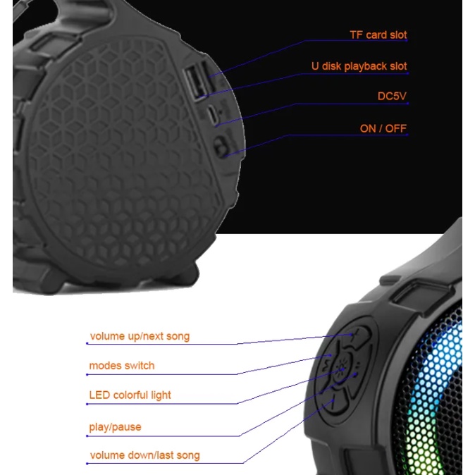 📌Keunggulan Produk : ✔ Sudah menggunakan teknologi canggih Bluetooth 5.0V ✔ Bisa mainkan lagu hingga 3-5 jam ✔ Memiliki warna lampu warna warni