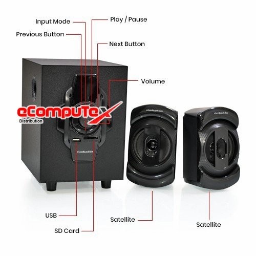 Speaker Simbadda Music Player CST 2100 N+ merupakan pilihan sempurna sebagai pelengkap untuk menonton film, mendengarkan musik dan game. Suara bass yang dihasilkan cukup menggelegar, sehingga pas di telinga Anda. Speaker ini dilengkapi dengan fitur USB Media, SD Card, dan FM Radio. Speaker ini juga dapat disambungkan pada Komputer, TV, DVD player, Ponsel dan lain sebagainya.