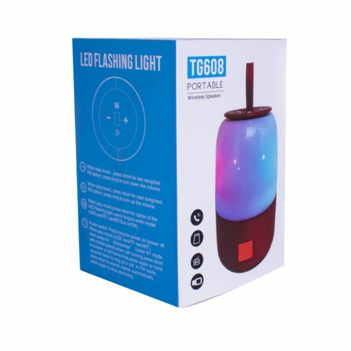 T&G TG608 LED Flash Light Bluetooth Speaker Portable Mini Wireless Speakers Outdoor Waterproof Subwoofer Music Box Loudspeaker Support FM Radio TF card