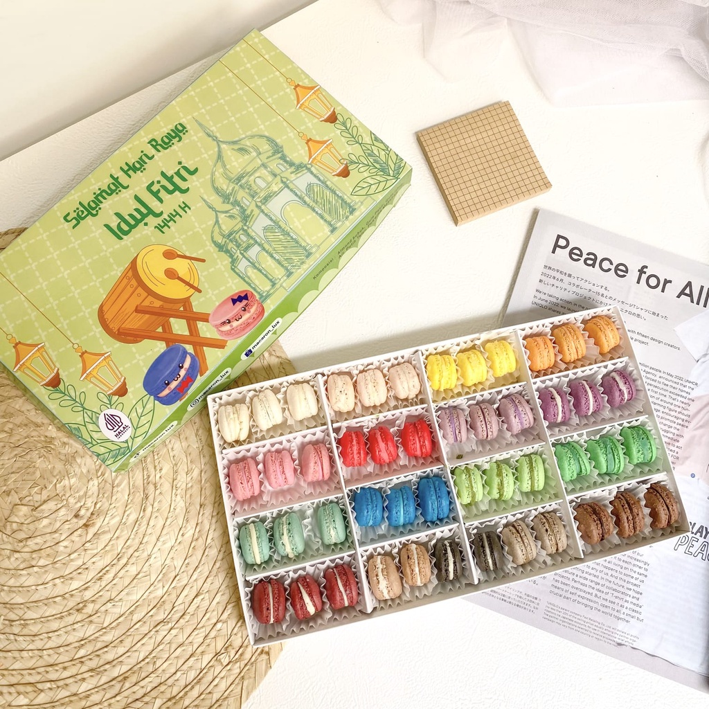 1️⃣ Isi Macaron 48Pcs 2️⃣Diameter <>2-3cm 3️⃣ Tahan 3 bulan dalam kemasan tertutup, di suhu ruang. 4️⃣Macaron merupakan DESSERT dari PRANCIS, RESEP MACARON ASLI! rasa CHEWY 5️⃣SAFETY SHIPPING 6️⃣100% HALAL 7️⃣100% TEPUNG ALMOND ASLI dan IMPORT! 8️⃣FILLING Macaron COKLAT PREMIUM dengan berbagai rasa!! 9️⃣Macaron Homemade, dan FRESH FROM OVEN ✅DIJAMIN ENAK DAN BIKIN NAGIH 🔟Pilihan Rasa Ditulis Di Catatan sebelum Checkout!!